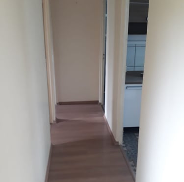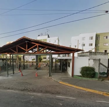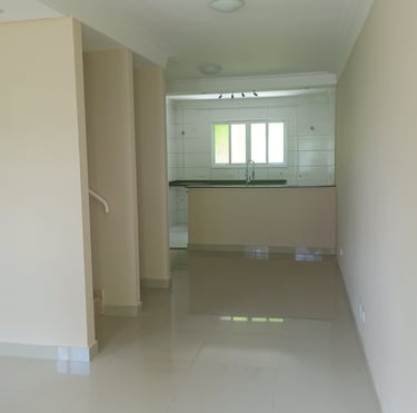 Sala para dois ambientes, 02 dormitórios, 01 banheiro, lavanderia ampla, com 01 vaga de garagem.