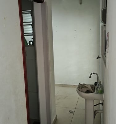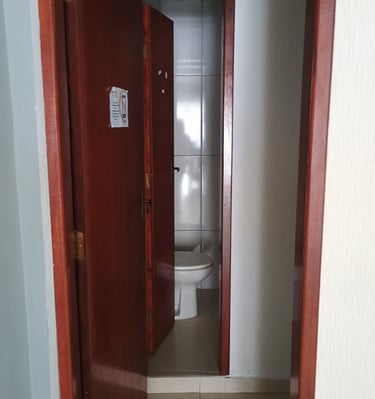 Aproximadamente 85 m², com dois banheiros e 01 quarto no fundo.